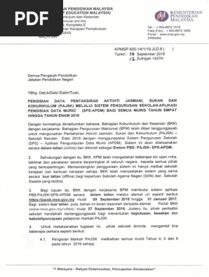 Surat Siaran Pengisian Data Pajsk Sekolah Rendah Tahun 2016