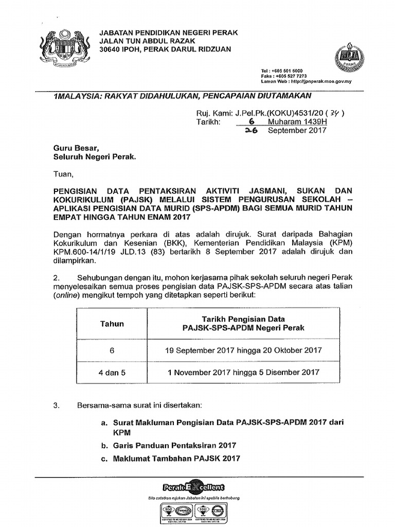 Pajsk sps apdm. Kami di sgo berharap sistem pengurusan online semua sistem kpm boleh ditingkatkan dari segi capaian dan permudahkan segala sistem yang ada untuk diuruskan dalam 1 website. Carta alir peraturan mengisi borang kokurikulum sukan guru kelas menyediakan pelaporan guru kelas key in data dalam aplikasi pajsk sps apdm guru penasihat melengkapkan maklumat pentaksiran kokurikulum dan sukan 38. Laman utama utama terkinipengisian data pentaksiran aktiviti jasmani sukan dan kokurikulum pajsk melalui sistem pengurusan sekolah aplikasi pengisian data murid sps apdm bagi sekolah rendah dan sekolah menengah tahun 2018. Guru penolong kanan link.