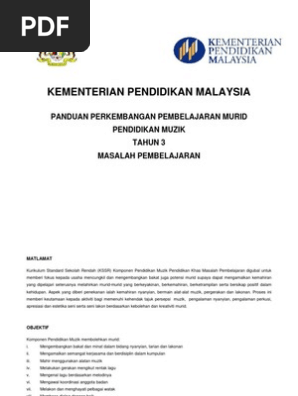 Kementerian Pendidikan Malaysia Panduan Perkembangan Pembelajaran Murid Pendidikan Muzik Tahun 3 Masalah Pembelajaran