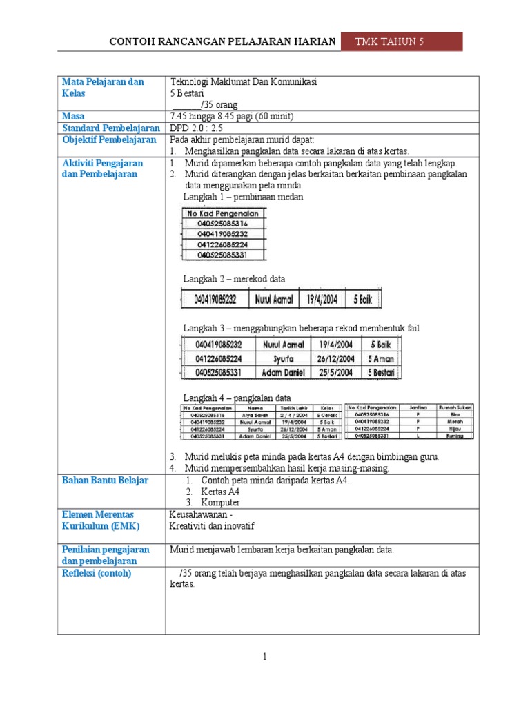 Tmk Tahun 5 Rekabentuk Pangkalan Data Pdf Document