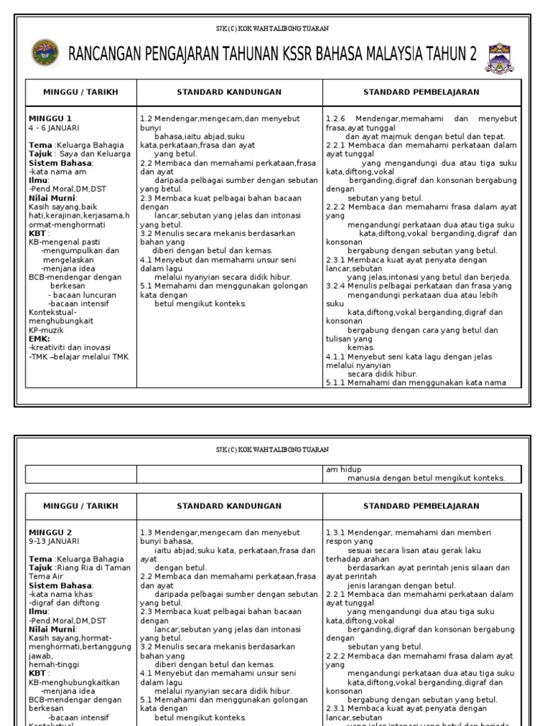 Xls Rph 2019 Kssr Semakan Tahun 2 Bahasa Melayu Saiful Aiman Academia Edu