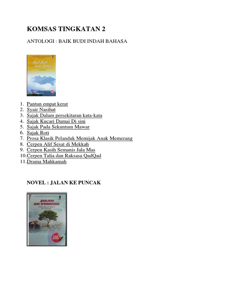 Rujukan Analisis Komsas Pt3 Antologi Baik Budi Indah Bahasa Novel Je Buddy Bookstore