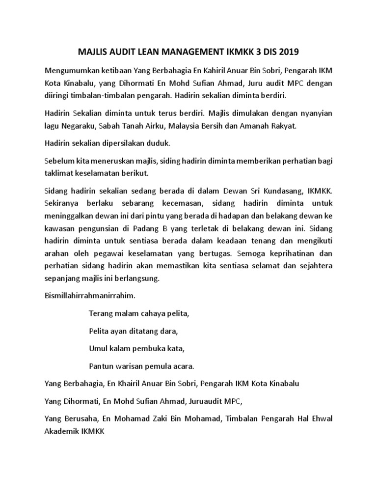 Teks Majlis Audit Lean Management