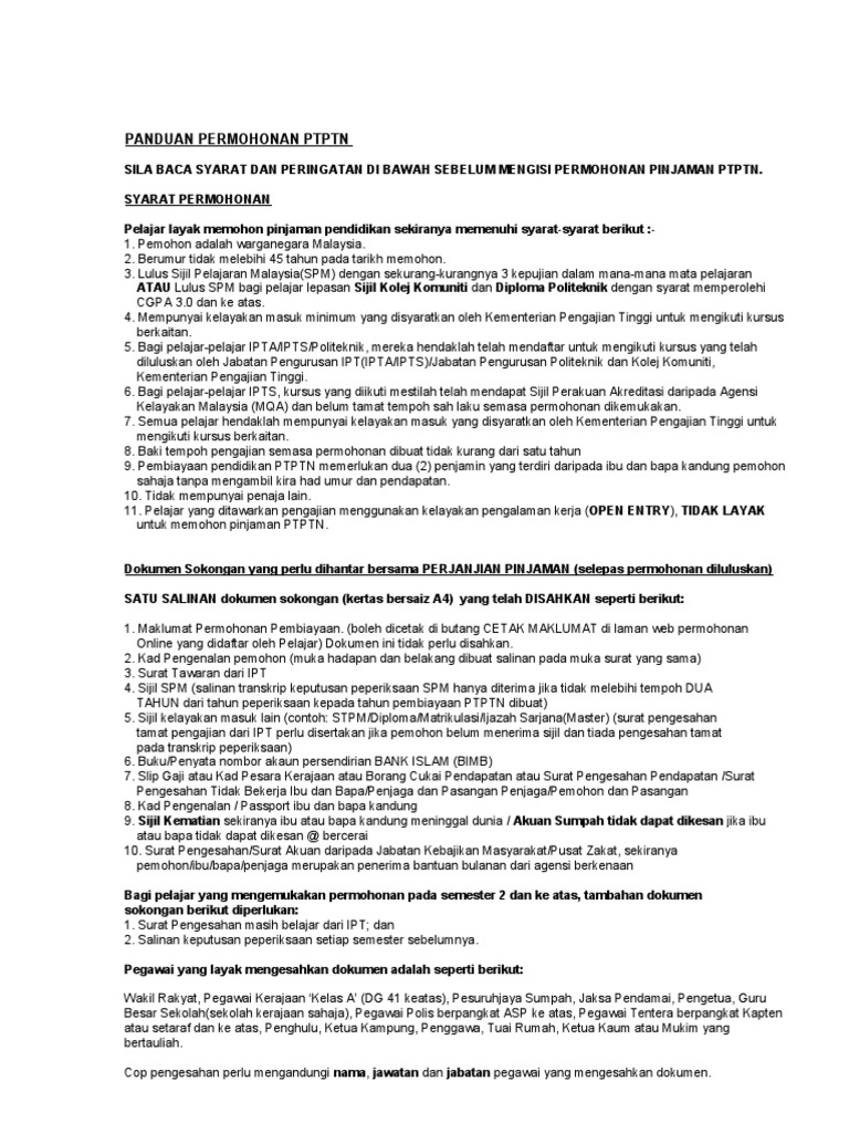 Panduan Permohonan Ptptn Online 2011