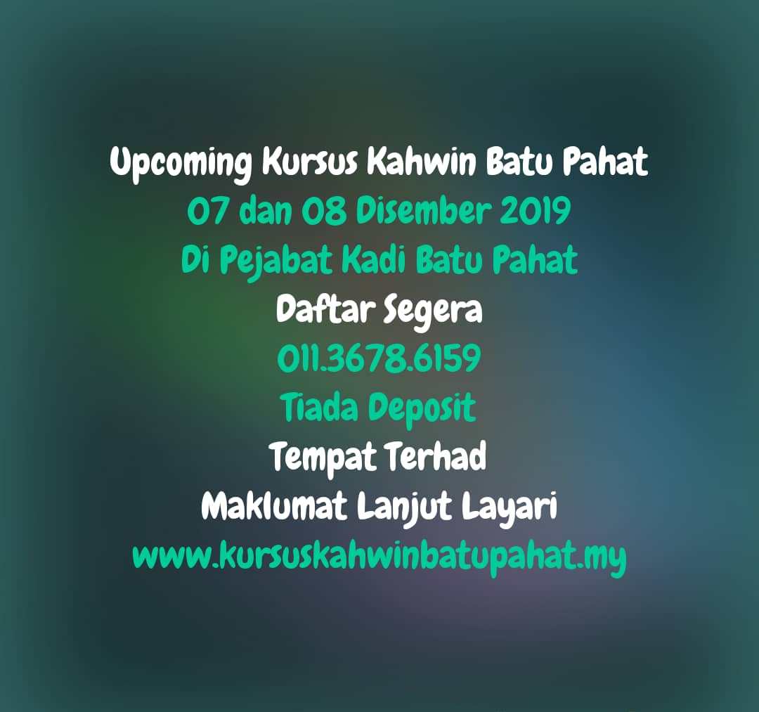 Kursus Kahwin Batu Pahat Dan Parit Raja 2020 Tarikh 21 22 Oktober 2017 Sabtu Ahad Lokasi Pejabat Kadi Batu Pahat Dan Peladang Simpang Lima Tiada Deposit Daftar Melalui Staff Pejabat Kadi