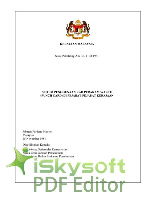 Kerajaan Malaysia Surat Pekeliling Am Bil 11 Of 1981 Sistem Penggunaan Kad Perakam Waktu Punch Card Di Pejabat Pejabat Kerajaan Pdf Free Download
