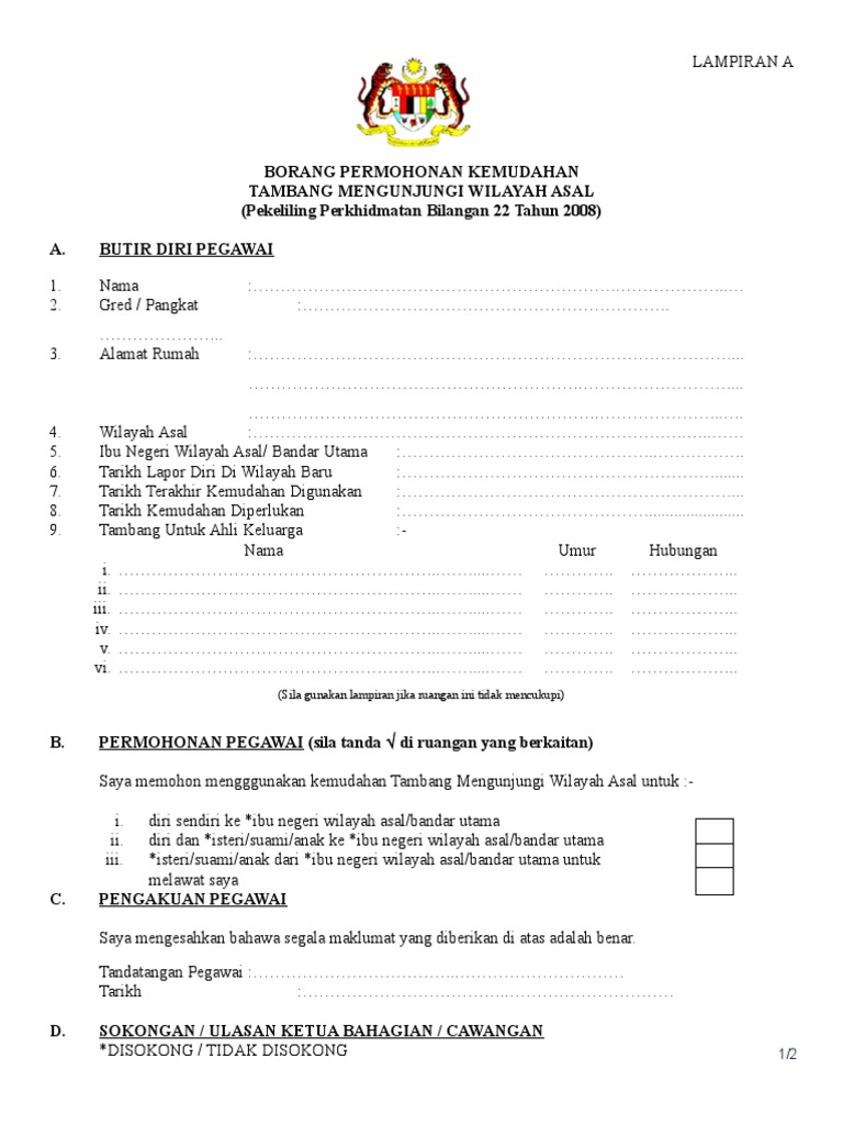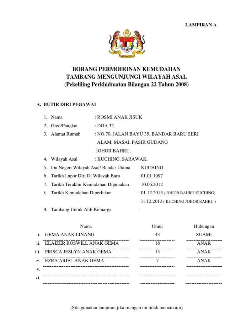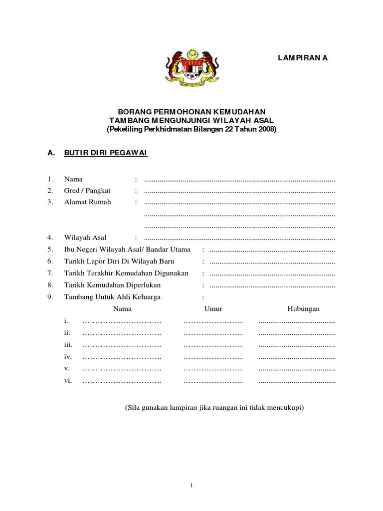 Borangpermohonan Tambang Percuma Mengunjungi Wilayah Asal Mengikut Pekeliling Perkhidmatan Bil Mohd Shahril Academia Edu