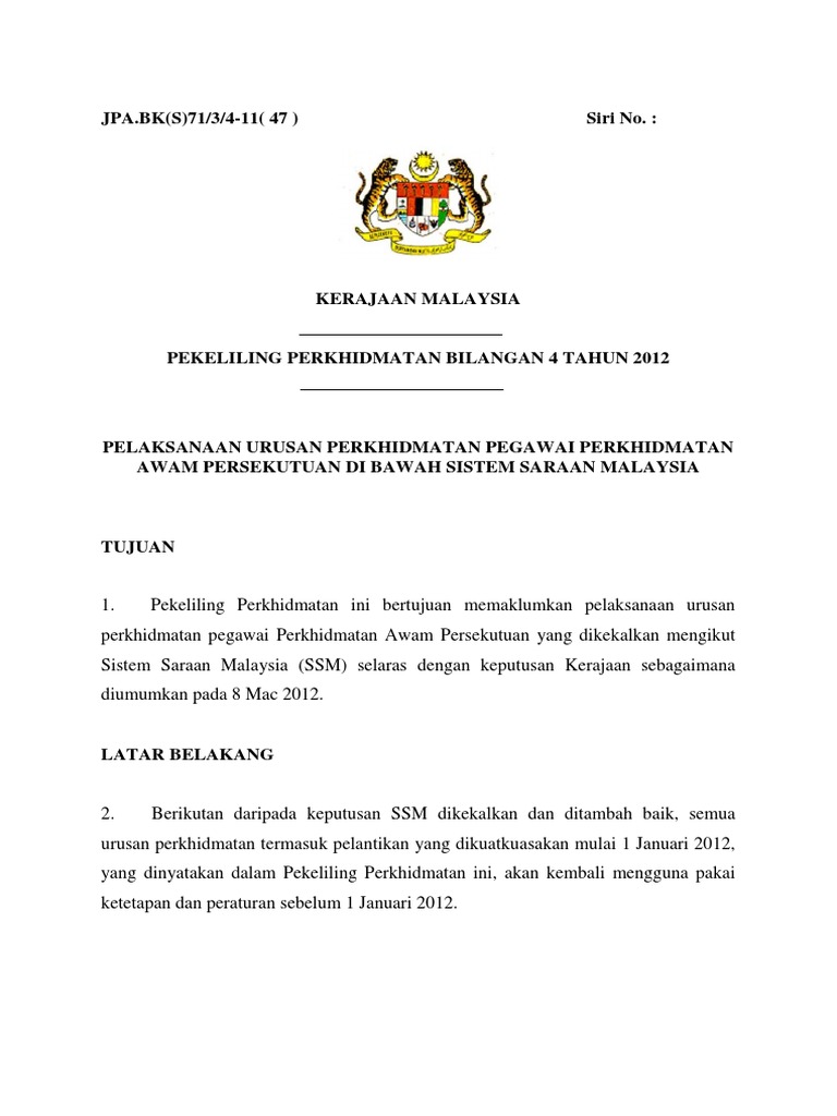 Pekeliling Perkhidmatan Bil 4 Tahun 2002 Pelaksanaan Sistem