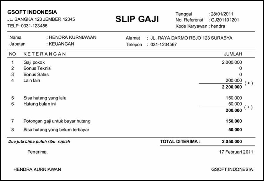 Download Contoh Slip Gaji Kerja Sendiri Hartabumihartabumi