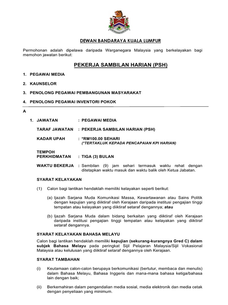 Pekerja Sambilan Harian Psh Dewan Bandaraya Kuala Lumpur