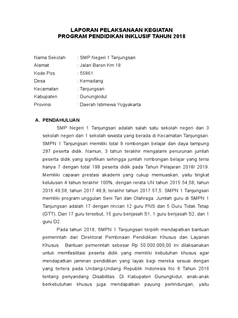 Laporan Program Pendidikan Inklusif