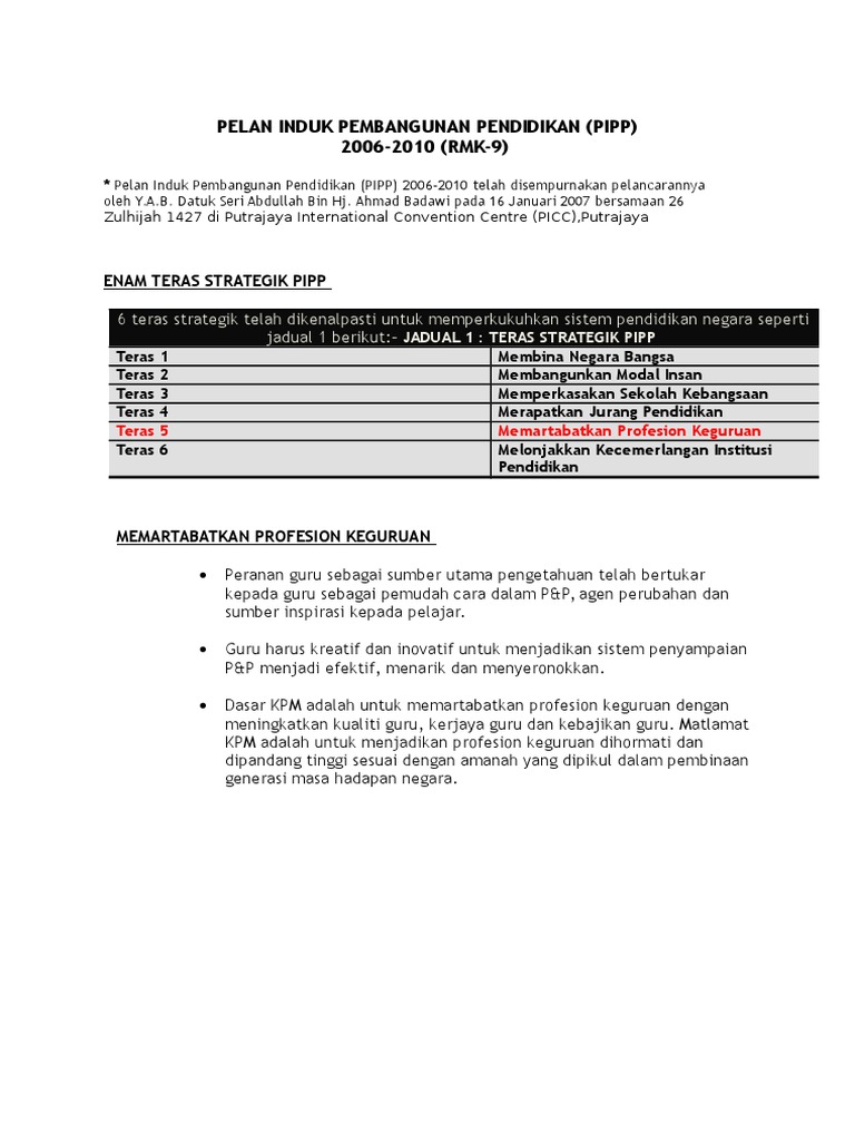 Pelan Induk Pembangunan Pendidikan Pipp 2006 2010 Doc Document