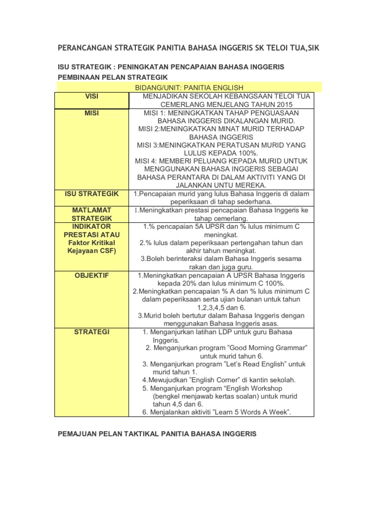 46094256 Perancangan Strategik Panitia Bahasa Inggeris Pdf Document