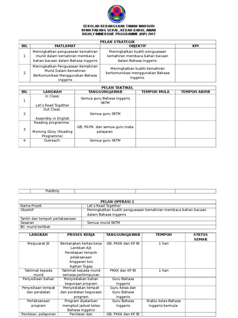 Pelan Strategik Taktikal Amp Operasi Highly Immersive Programme Hip Sk Terasi 2017 Pdf Free Download