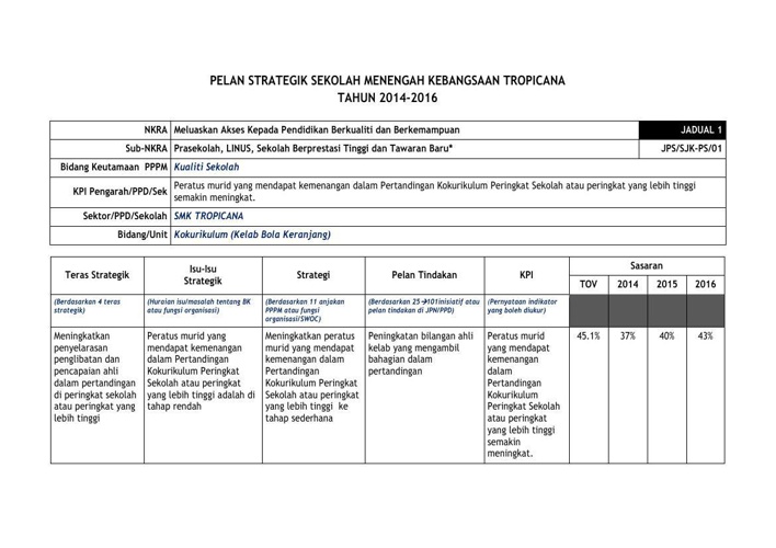Pelan Strategik Kokurikulum Pbsm Pendidik2u