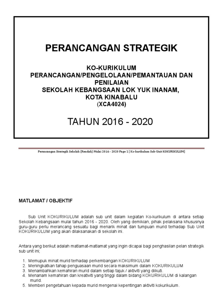Pelan Strategik Unit Kokurikulum Smkbr Pdf Document