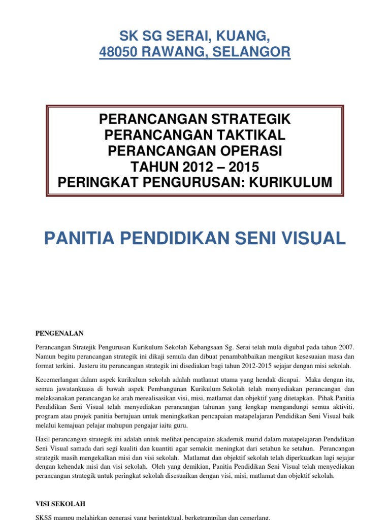 Pelan Strategik Kokurikulum Pbsm Pendidik2u