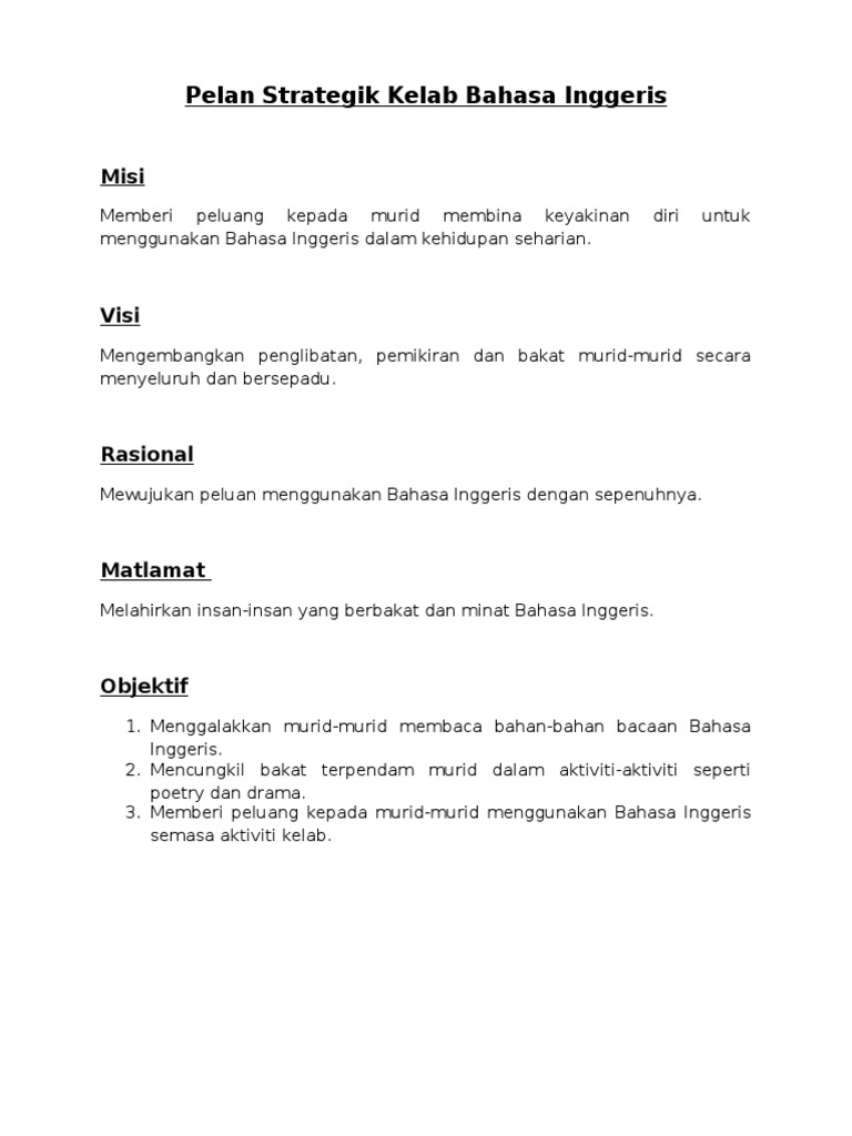 Pelan Strategik Kelab Bahasa Inggeris 1 Doc