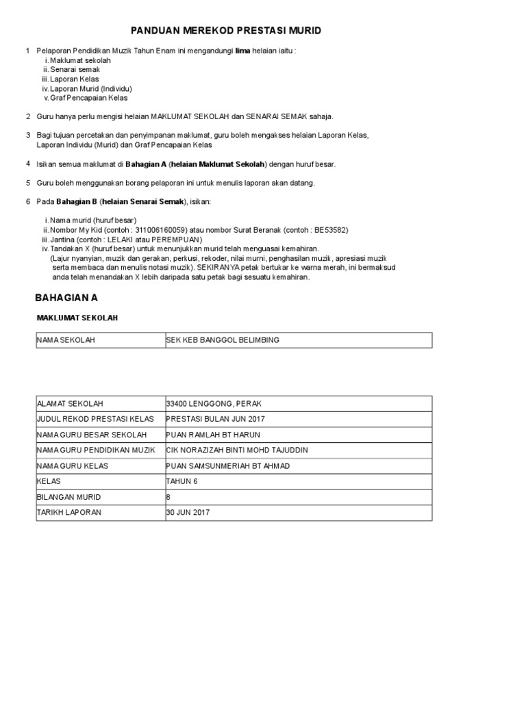 Templat Pelaporan Kssr Muzik Tahun 6 Sumber Pendidikan