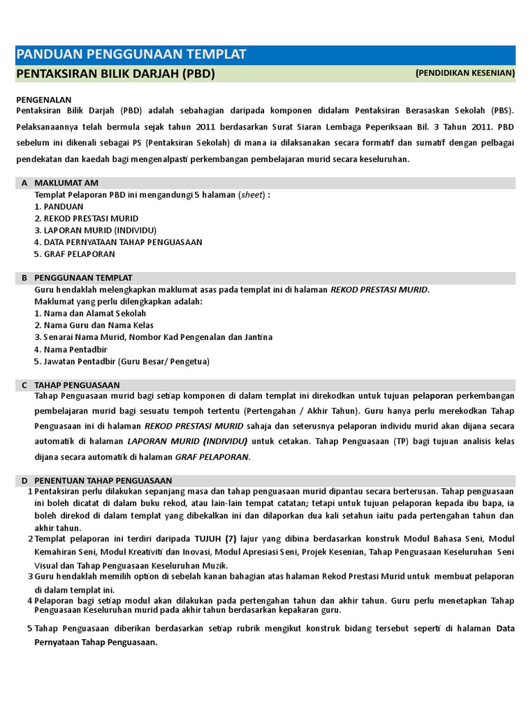 1 Pendidikan Kesenian Tahun 1 Template Pelaporan Pbd Xlsx