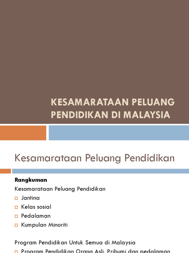 Kesamarataan Peluang Pendidikan Di Malaysia Presentation Pptx