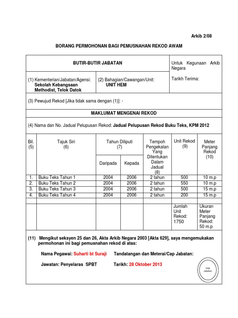 Surat arahan pentadbiran 14 februari 2011 skim pinjaman buku teks spbt pengurusan buku teks spbt dan permohonan keperluan buku teks tahun 2011 bagi kegunaan tahun 2012. 7 98 penggunaan buku teks dan buku latihan dan aktiviti yang di perakukan oleh kementerian pendidikan. Jadual pelupusan rekod buku teks 5. Pdf surat kementerian kewangan bertarikh 3 november 1993 pelupusan bahan bahan bercetak dan kertas terpakai pdf 12 kb 736 downloads 19 feb 2019.