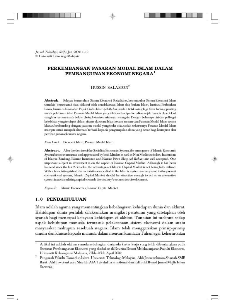 Perkembangan Pasaran Modal Islam Dalam Pembangunan Ekonomi Negara