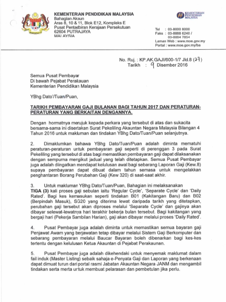 Surat Tarikh Pembayaran Gaji Tahun 2017 Pdf