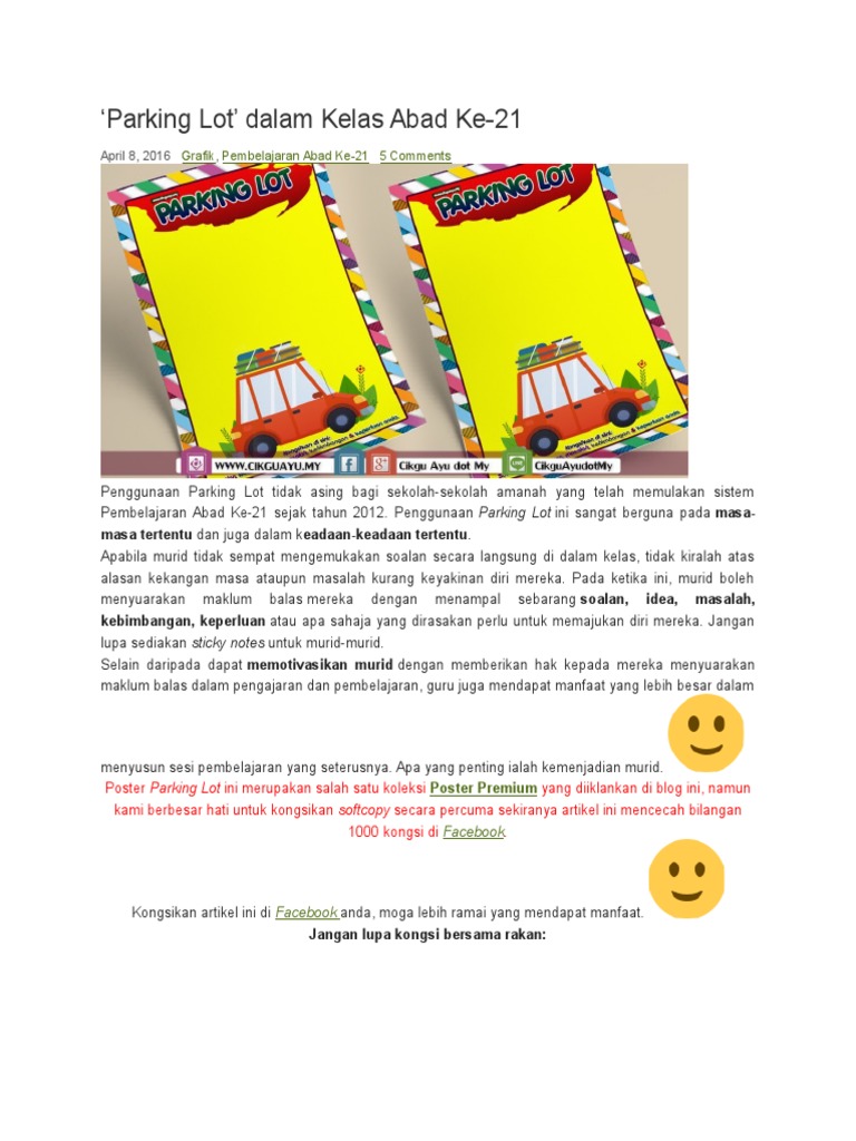 Pembelajaran abad ke 21 parking lot. In china you walk long distances every day.