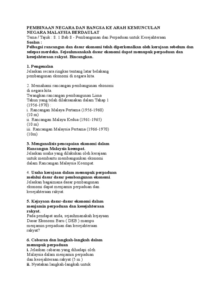 Sejarah Doc Tema Umum Pembinaan Negara Dan Bangsa Ke Arah Kemunculan Negara Malaysia Berdaulat Dasar Ekonomi Baru Merupakan Satu Bentuk Perancangan Course Hero