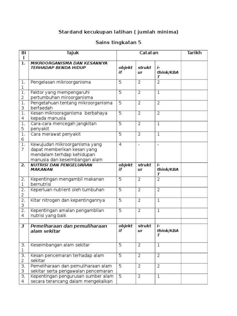 Stardand Kecukupan Latihan Sainsf5 Pdf Document
