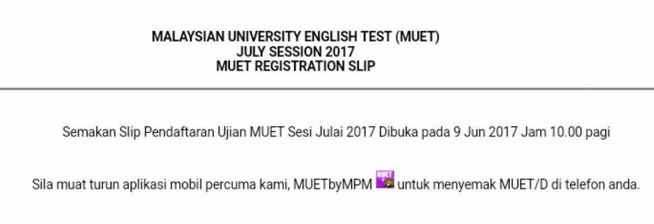 Mpp Uitm Kag On Twitter Sila Buat Semakan Slip Pendaftaran Ujian Muet Sesi Julai 2017