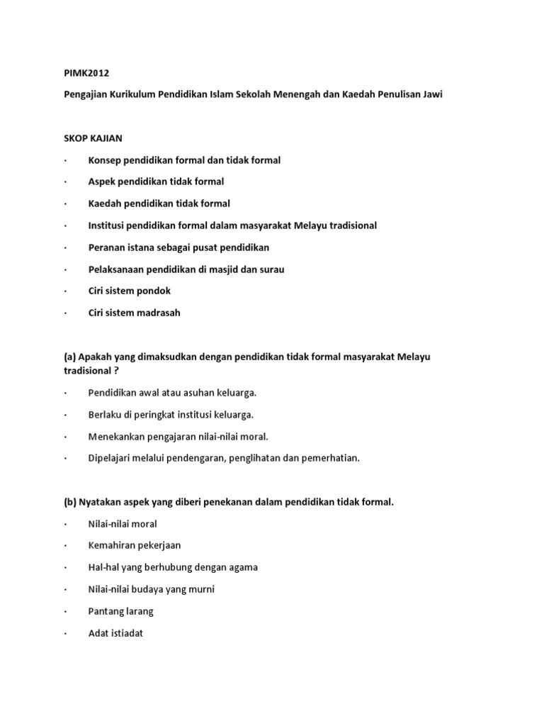 Pendidikan Formal Tidak Formal Di Alam Melayu Weblog Cikgu Jumali Pdf Document