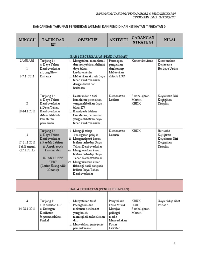 Rancangan Tahunan Pendidikan Jasmani Dan Pendidikan Kesihatan Tingkatan 5