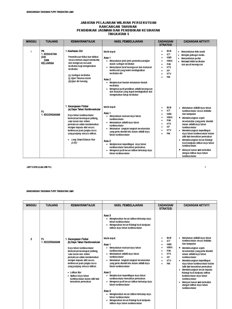Rpt Pjpk T 5 2019 Doc Rancangan Tahunan Pjpk Tingkatan Lima Rancangan Tahunan Pendidikan Jasmani Dan Pendidikan Kesihatan Tingkatan 5 Minggu Minggu 1 Course Hero