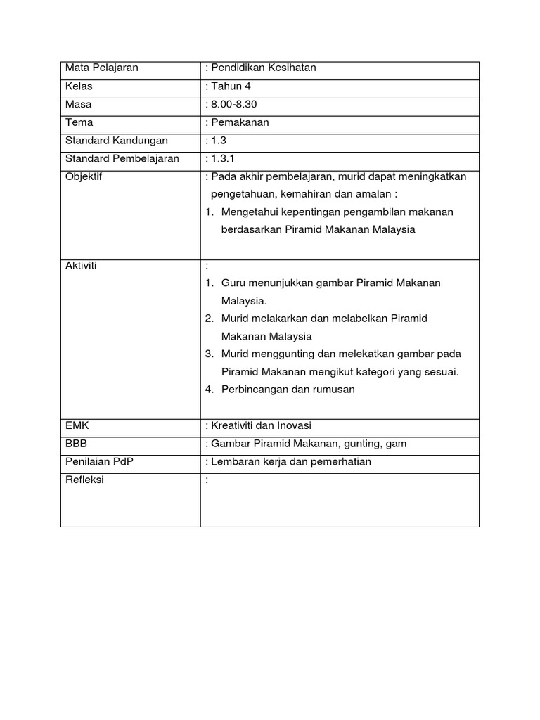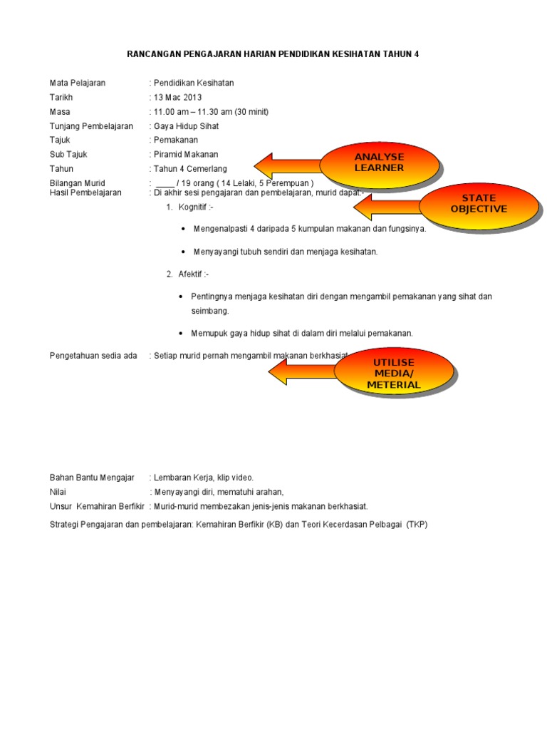Doc 68267525 Rancangan Pengajaran Harian Pendidikan Kesihatan Tahun 4 1 Tzesoon Chean Academia Edu