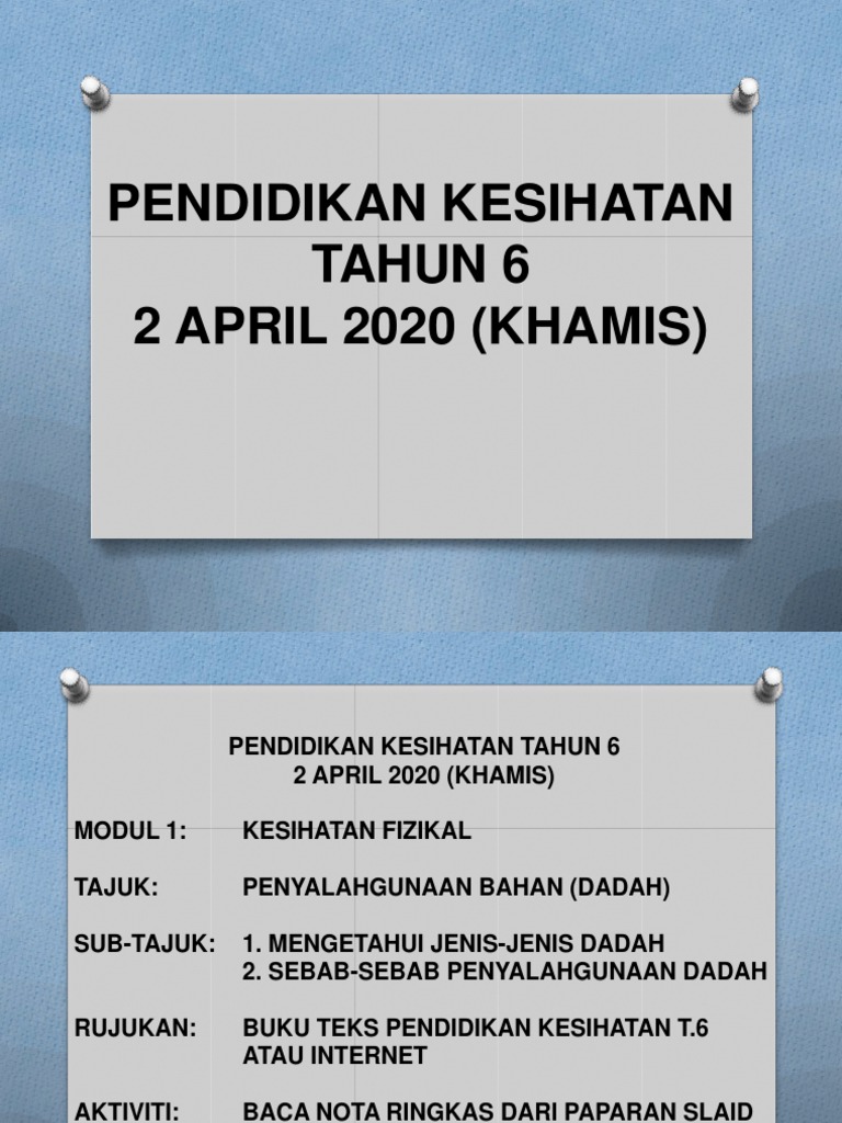 Pendidikan Kesihatan Tahun 6 2 April 2020 Khamis