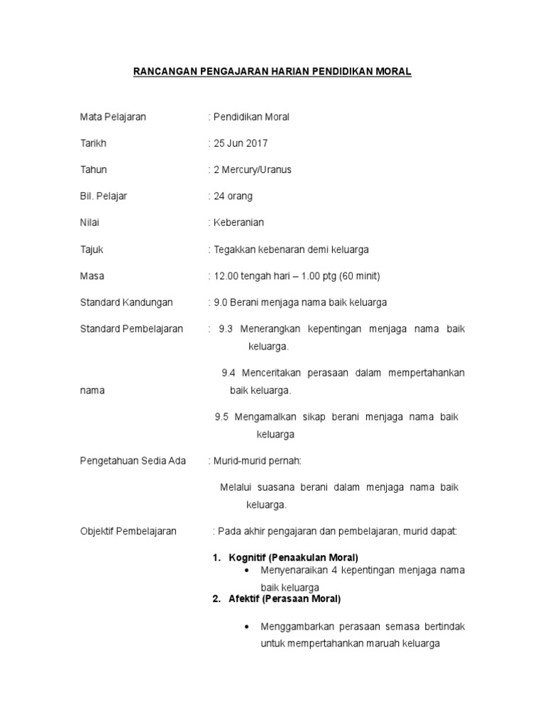 Doc Rancangan Pengajaran Harian Pendidikan Moral Tahun 5 Mem Mm Academia Edu