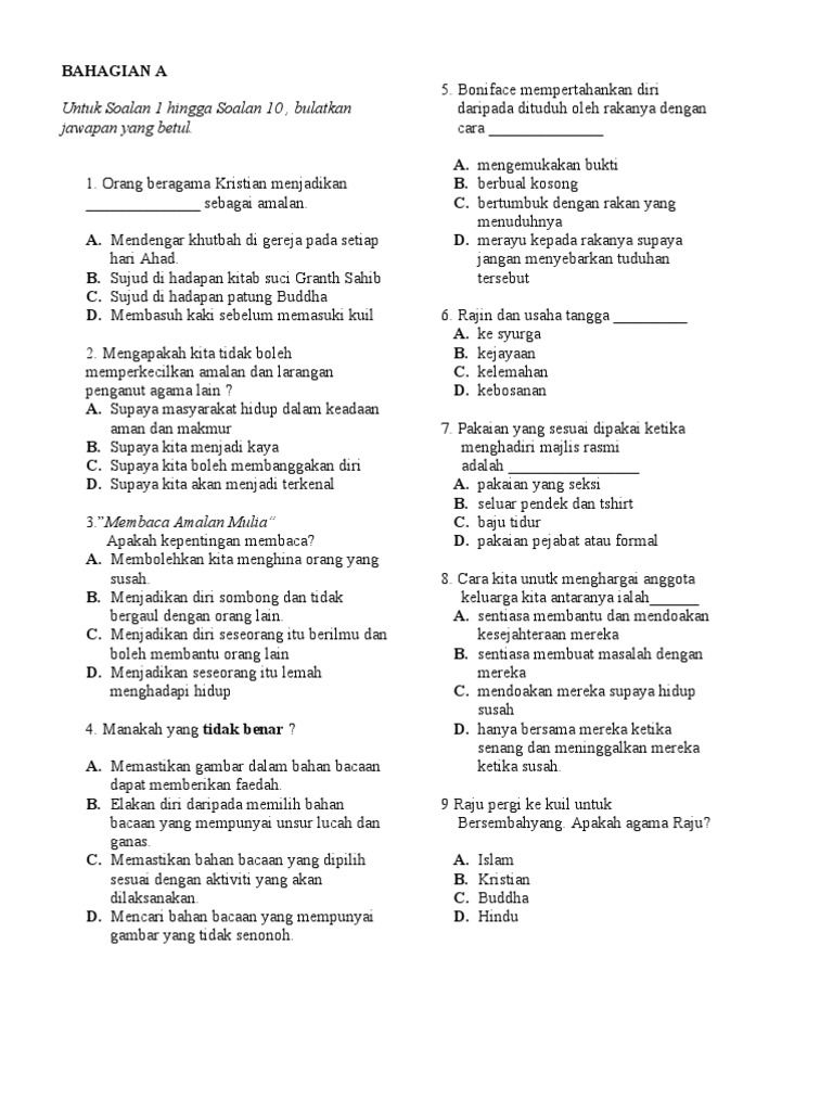 Contoh Soalan Pendidikan Moral Tahun 1 Kssr Tersoal P