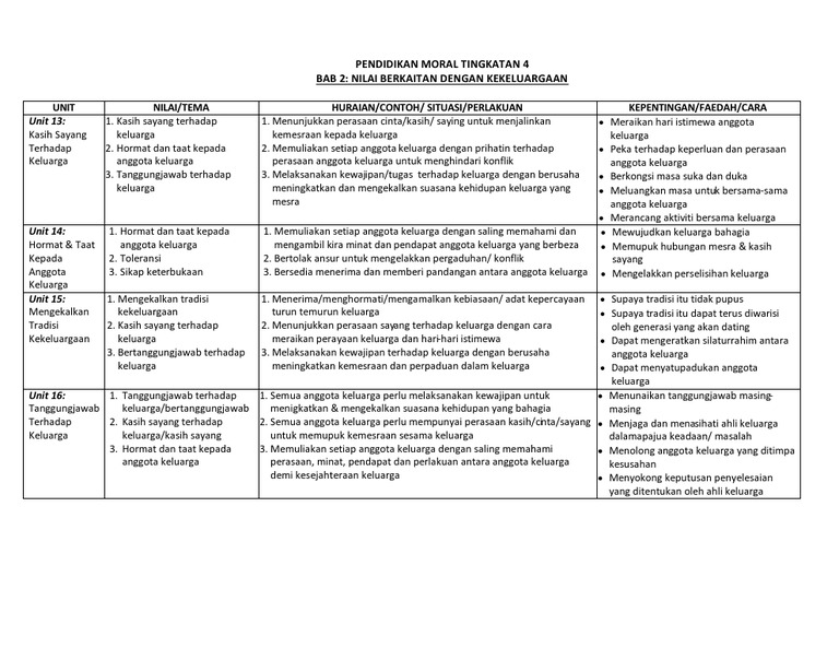 Nota Pendidikan Moral Tingkatan 4 School Work