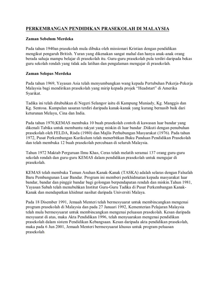 Dasar Pendidikan Prasekolah Malaysia Pdf