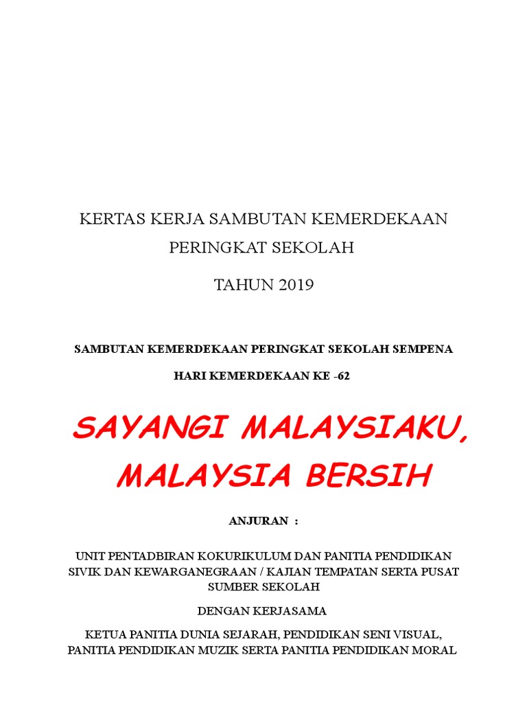 Sayangi Malaysiaku Malaysia Bersih Kertas Kerja Sambutan Kemerdekaan Peringkat Sekolah Tahun 2019