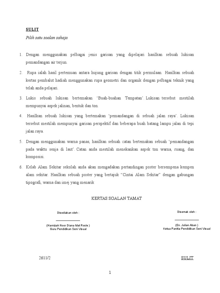 Download Rpt Pendidikan Seni Visual Tingkatan 4 Berguna Soalan Kertas 2 Pendidikan Seni Visual Tingkatan 1 Docx Document Skoloh