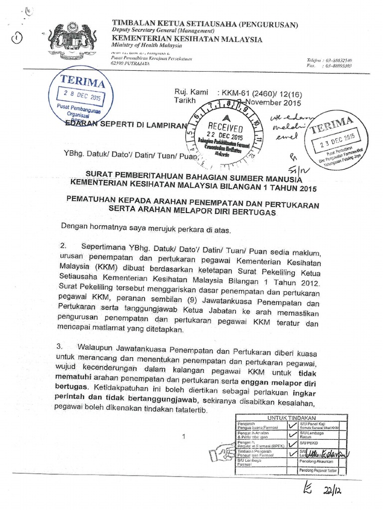 Pemberitahuan Pertukaran Penempatan Bil Aziah Binti Raja Othman Klinik Desa Bukit Gading Klinik Desa Bukit Suriani Binti Mohd Noor Klinik 1 Malaysia Tanah Merah Klinik Kesihatan Tanah Pdf Document