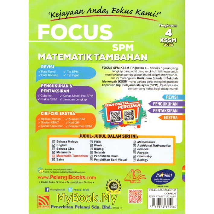 Myb Buku Rujukan Nota Focus Spm Tingkatan 4 Kssm Matematik Tambahan Pelangi Shopee Malaysia