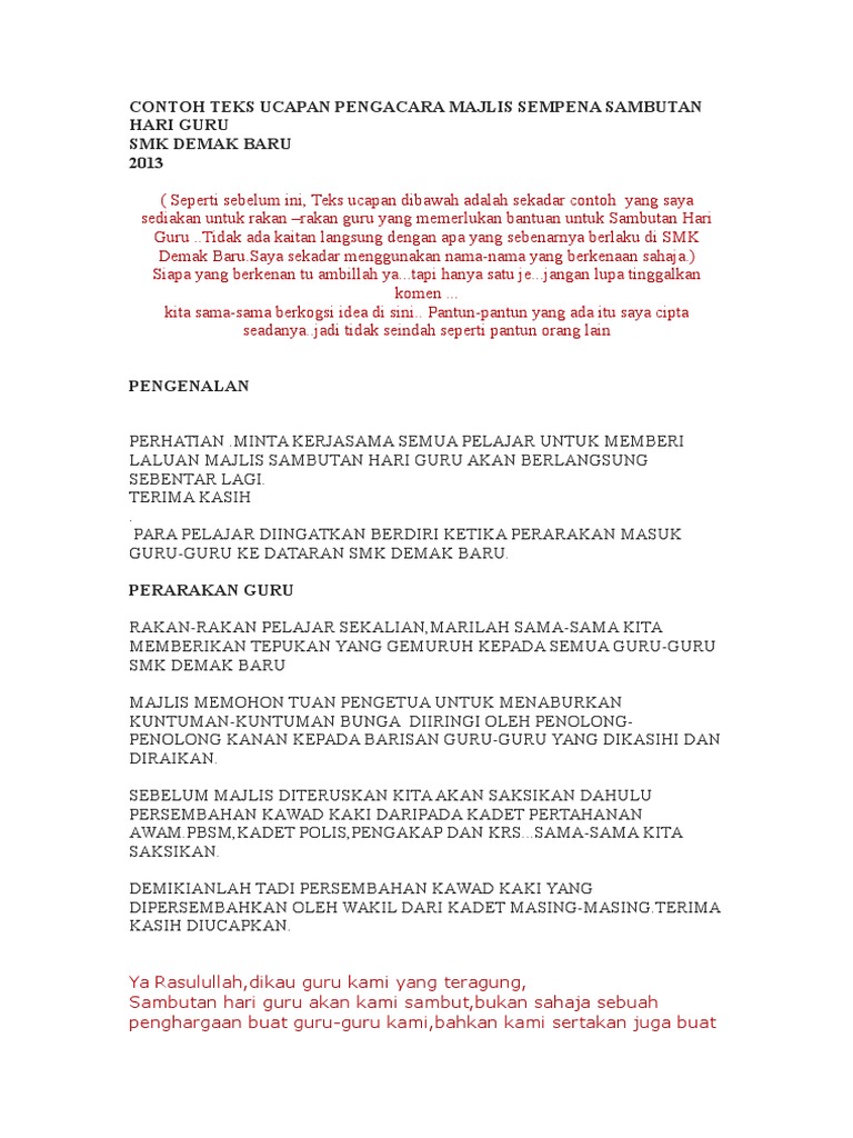 Teks Pengacara Majlis Sambutan Hari Guru Docx