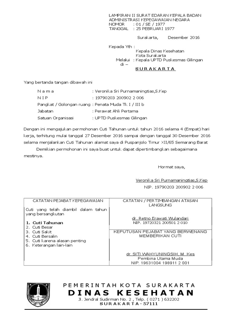 Pengajuan Cuti Tahunan Contoh Surat Cuti Kerja
