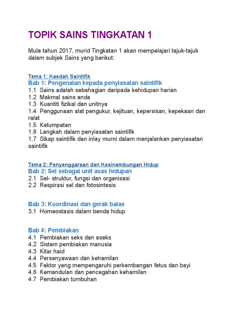Topik Sains Tingkatan 1