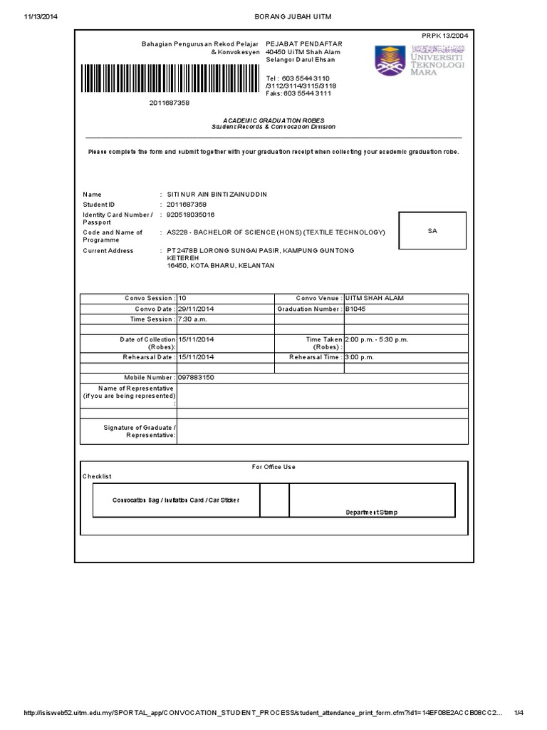 Borang Jubah Uitm