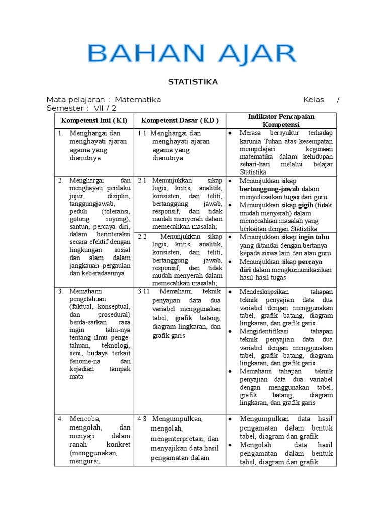 Statistika Deskriptif Materi Penyajian Data Statistika Inferensia Contoh